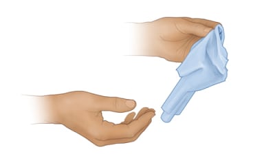 Use gloves whenever you might touch body fluids, such as saliva, blood, urine, or stool. Use a new pair of gloves when you touch areas near a cut (incision) made by a doctor. And some people use gloves when bathing someone. Gloves can also be used when you put medicines on the skin and when you give shots.