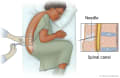 Some people find it uncomfortable to lie curled up on their side. The soap may feel cold on your back. You will probably feel a brief pinch or sting when the numbing medicine is given. You may feel a brief pain when the spinal needle is inserted or repositioned.